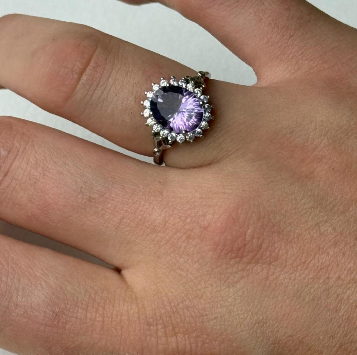 Cautiva con el misticismo del anillo “Aura Imperial”. Esta exquisita pieza en plata de primera ley 925 presenta una amatista central de talla ovalada, rodeada por una corona de circonitas que potencian su brillo natural. Un diseño clásico con un toque de color espiritual y elegante.