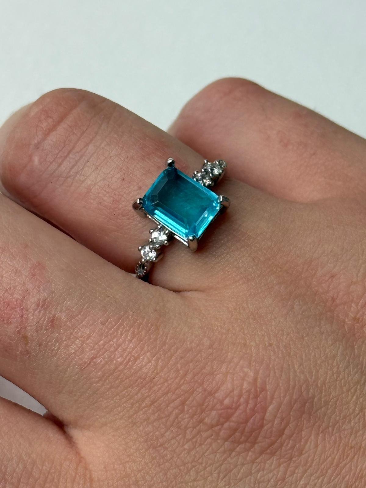 Eleva tu estilo con el diseño atemporal de la talla esmeralda. Este anillo centra su belleza en un topacio azul de proporciones perfectas, cuya talla rectangular resalta la transparencia y profundidad de la piedra. Es una joya diseñada para quienes buscan una estética minimalista pero lujosa.