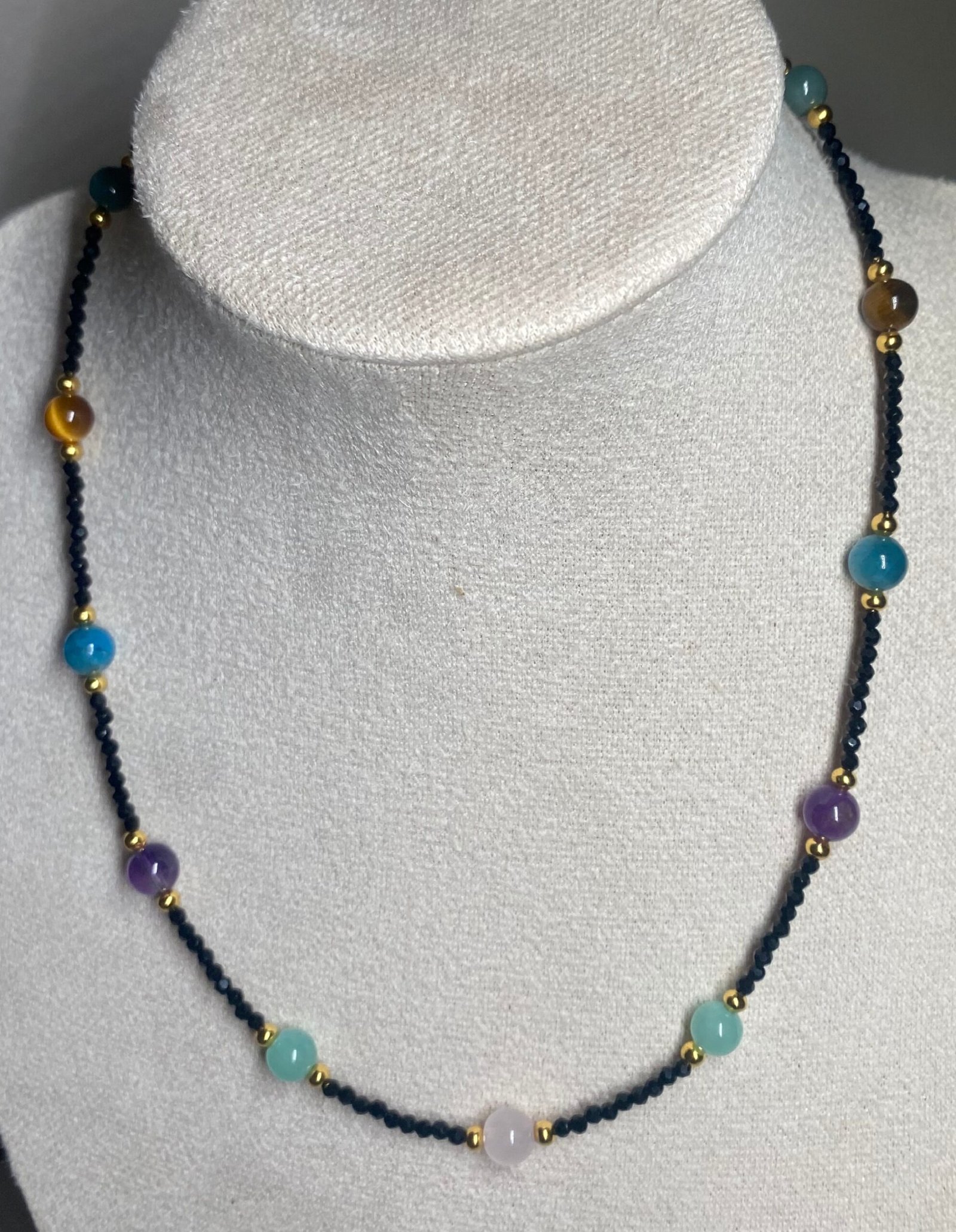 Collar Amaré “Arcoíris del Alma” – Espinela Negra y Siete Cristales Naturales