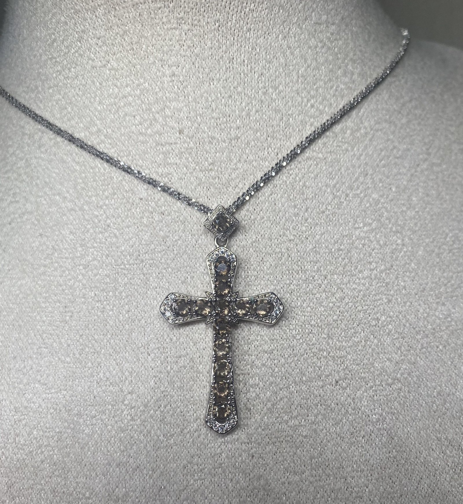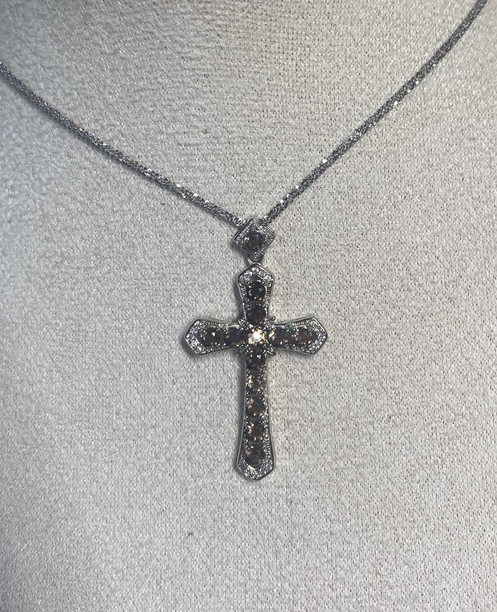Collar de plata 925 con cruz de moissanita color cuarzo ahumado, cadena 45 cm