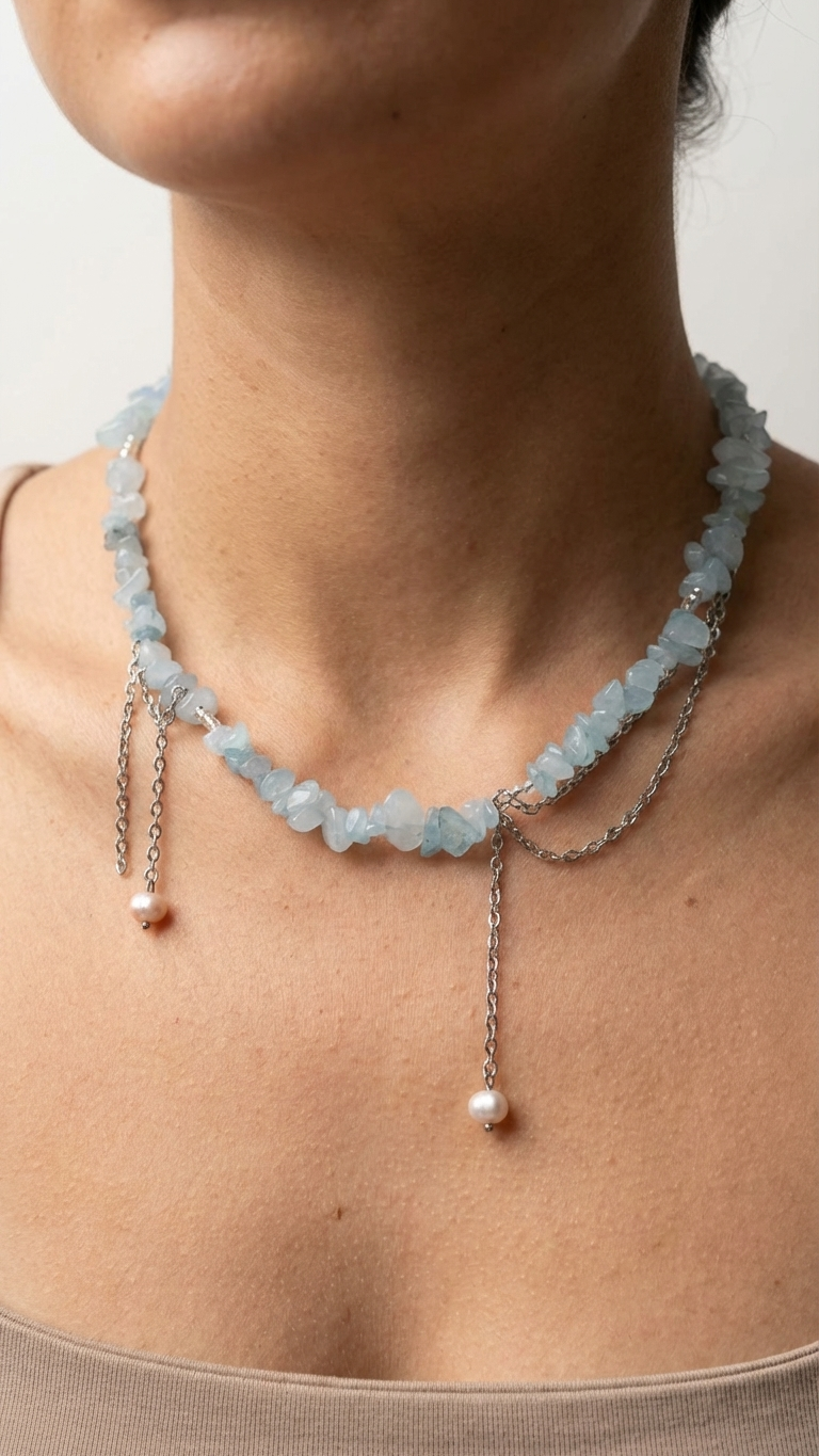 Collar Nayadé – Aguamarina y acero