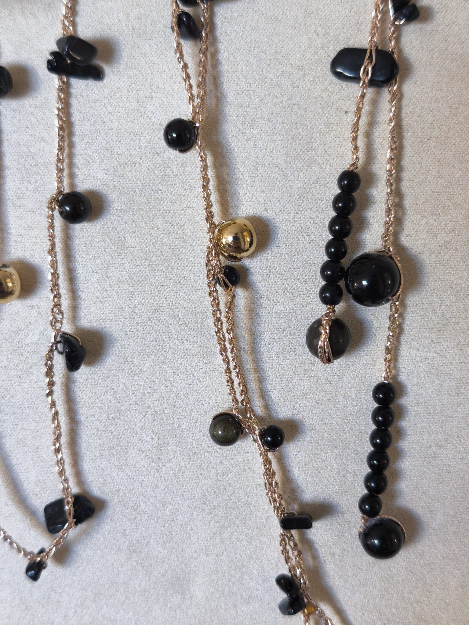 Colores: Negro (obsidiana natural) y dorado (cuenta sintética)