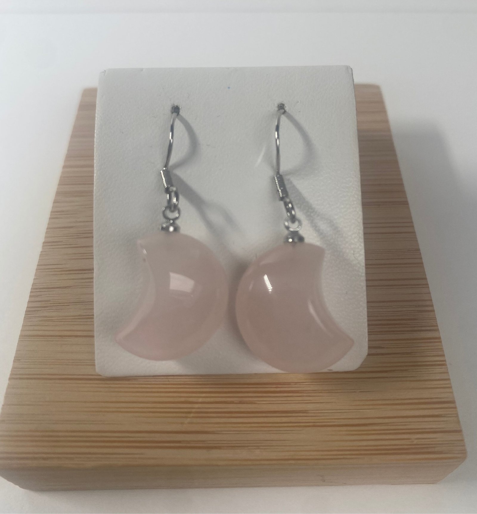Piedra: Cuarzo rosa natural tallado en forma de luna.