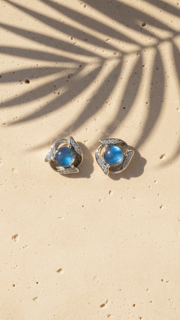 La serenidad del azul llega a tu joyero. Estos pendientes han sido creados para quienes aprecian los detalles delicados y el brillo sutil. El centro de cada pieza es una aguamarina de tono suave, rodeada por una montura de aleación ligera que incorpora pequeñas circonitas para captar cada destello de luz.