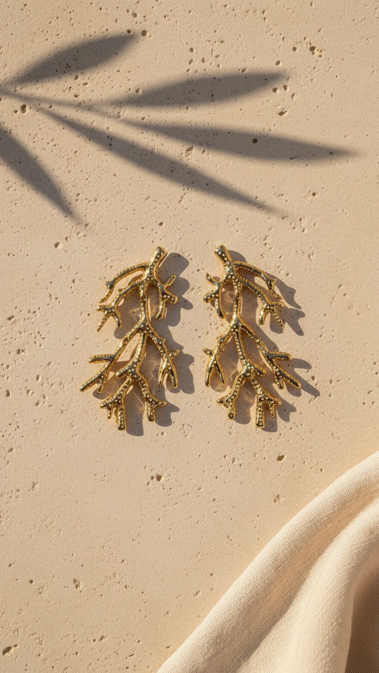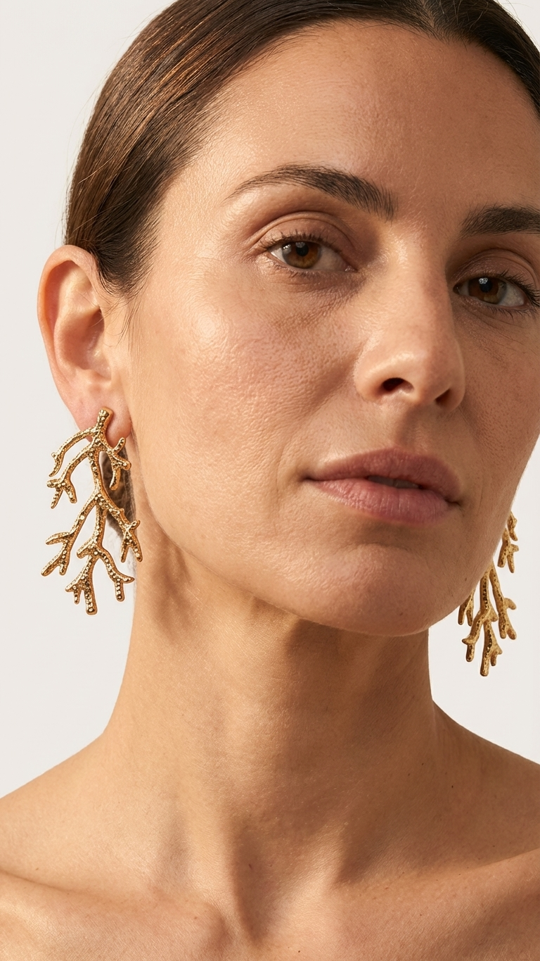 Algunas formas no se inventan, se encuentran. Los pendientes Coral reproducen con una fidelidad asombrosa la estructura ramificada del coral marino: cada rama, cada bifurcación, cada pequeño nódulo texturado está ahí por una razón estética que la naturaleza lleva perfeccionando millones de años.