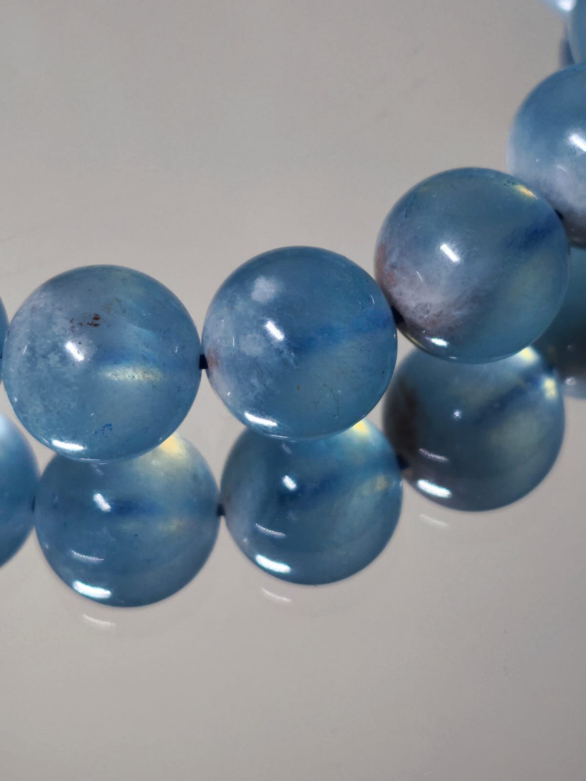 Pulsera elaborada con cuentas de Aguamarina de unos 10 mm, montadas en un elástico de gran calidad que se adapta cómodamente a tu muñeca.