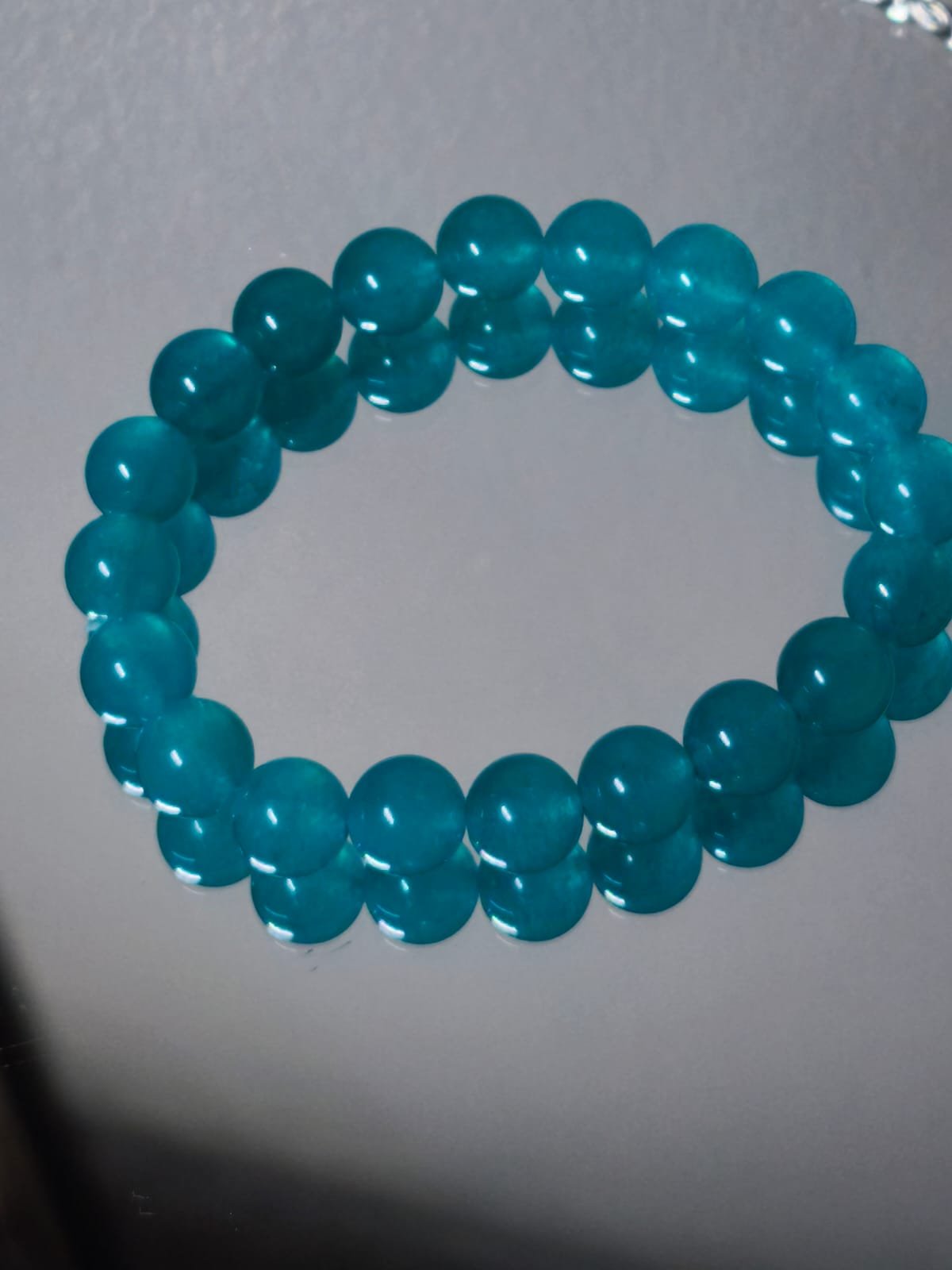 Pulsera elaborada con cuentas de Amazonita de unos 10 mm, montadas en un elástico de gran calidad que se adapta cómodamente a tu muñeca.