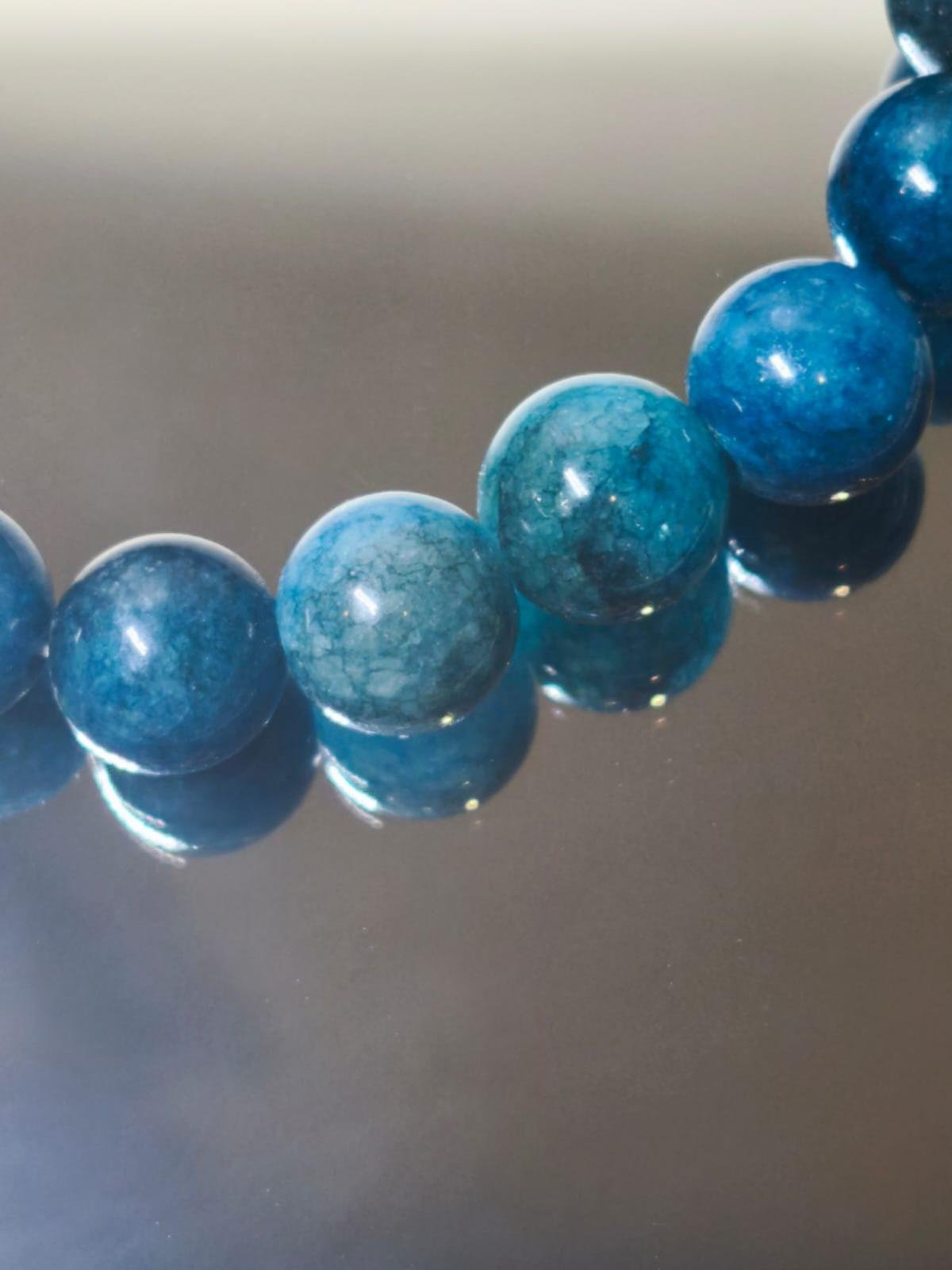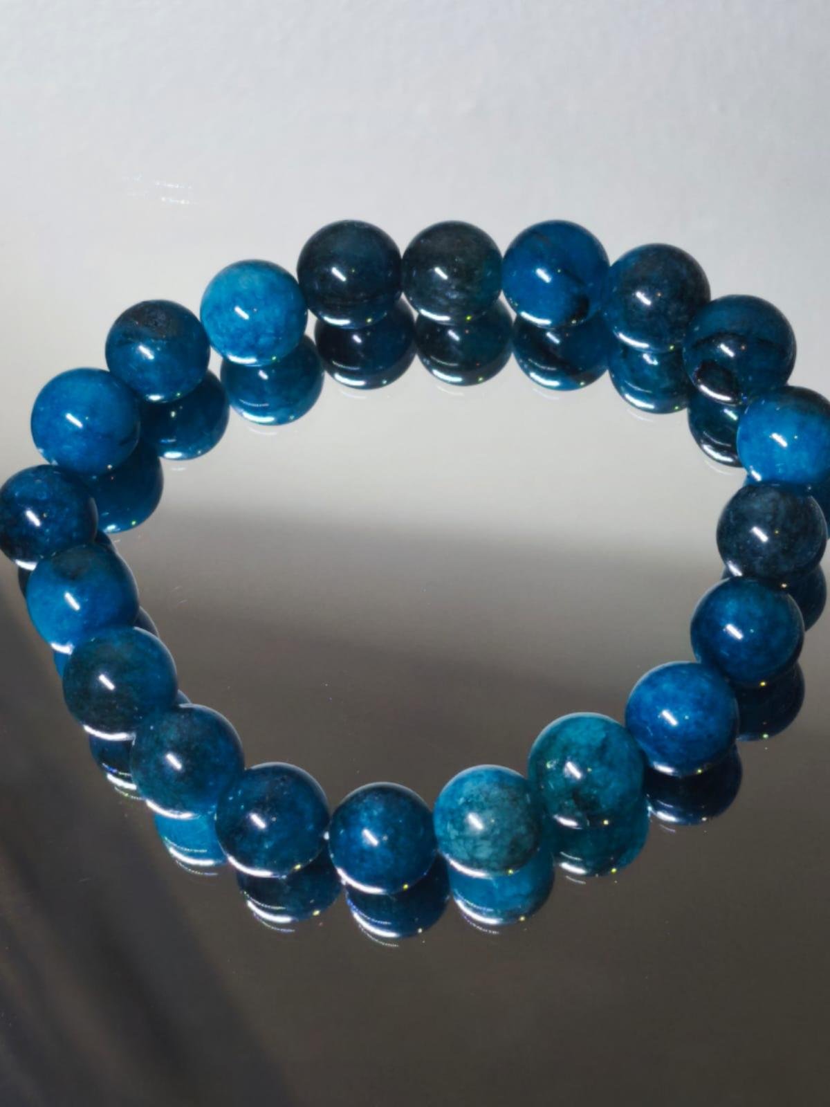 Pulsera elaborada con cuentas de Apatito de unos 10 mm, montadas en un elástico de gran calidad que se adapta cómodamente a tu muñeca.