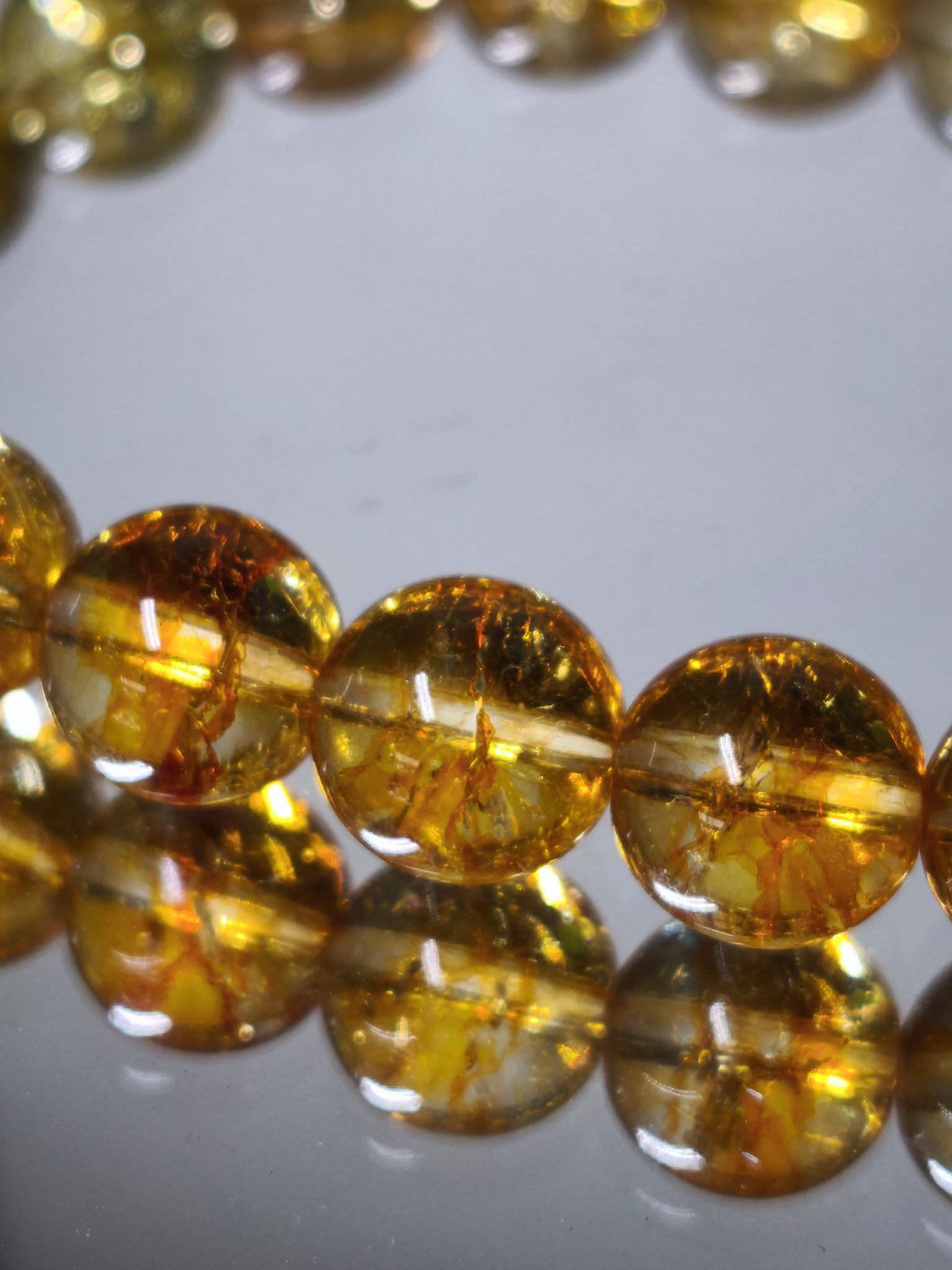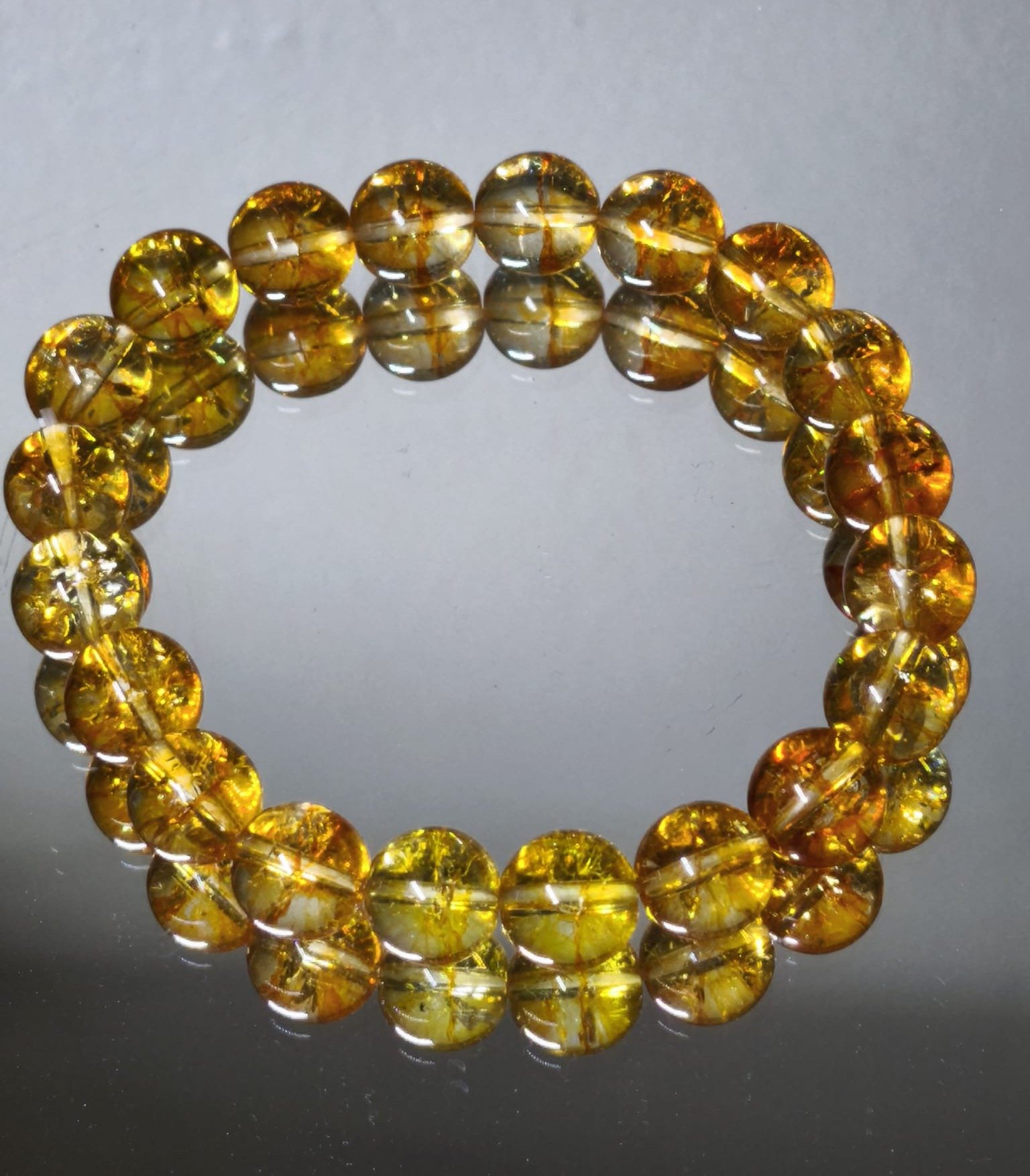 Una pieza atemporal y versátil, elaborada con cuentas de citrino natural transparente de unos 9 mm, montadas en un elástico de gran calidad que se adapta cómodamente a tu muñeca.