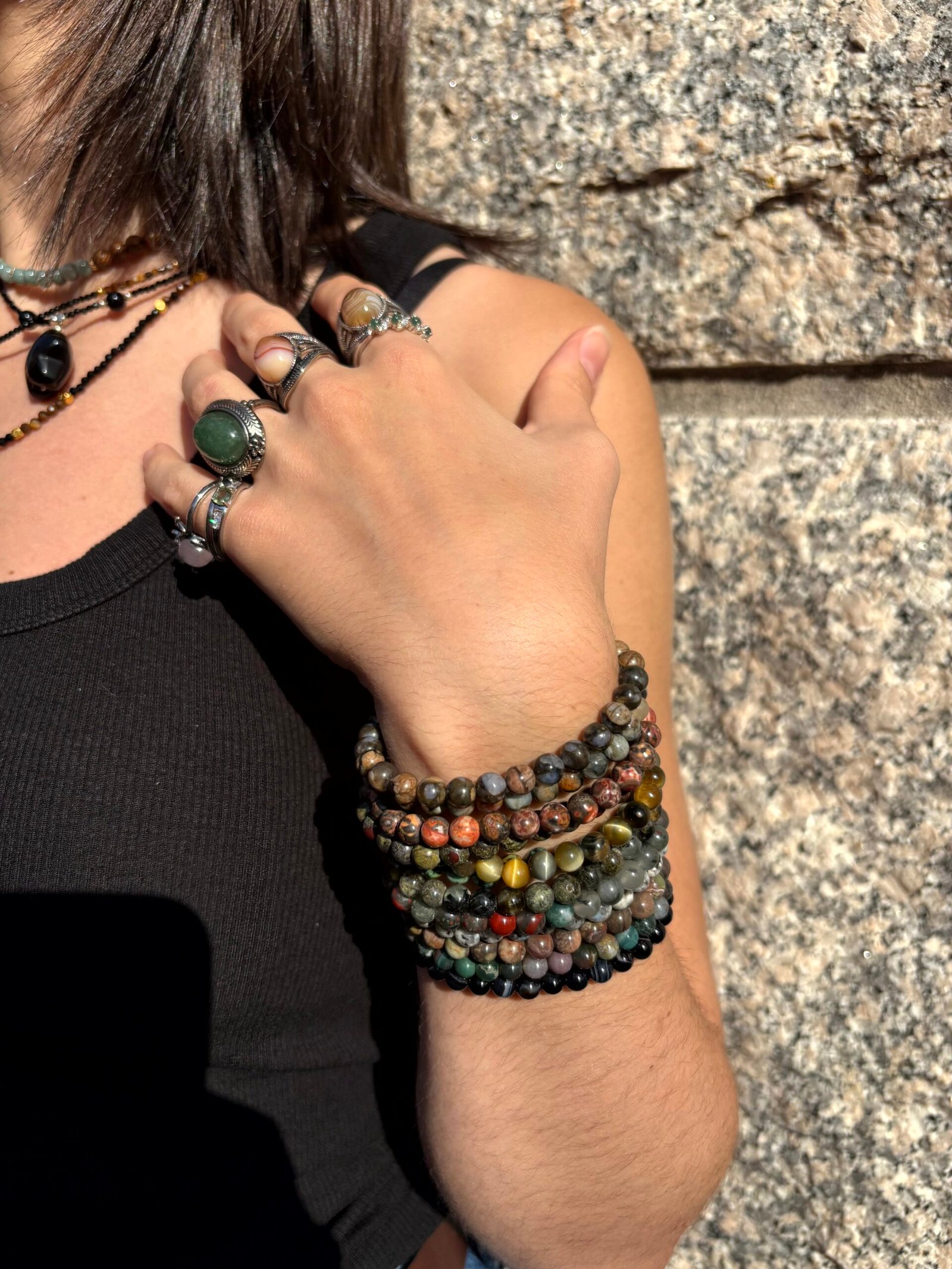 Una pieza atemporal y versátil, elaborada con cuentas de piedra natural redonda de unos 3-4 mm, montadas en un elástico de gran calidad que se adapta cómodamente a tu muñeca.